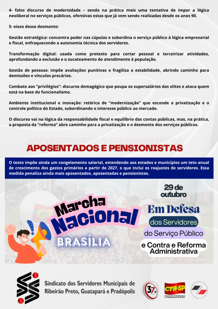 Leia, compartilhe! Somente com a conscientização e a mobilização de todos é que conseguiremos barrar a Reforma Administrativa. Se é ruim para o serviço público, é péssimo para o Brasil!